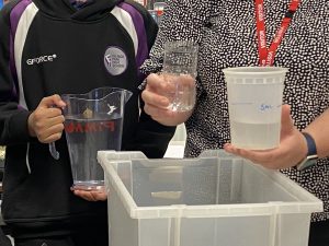 Mathematics trainees use a Die Hard clip to do a practical maths activity. We were surprised how engaged and well behaved year 9 were. The task was interesting and they wanted to do it. Learning with their hands and we did not spill a drop!